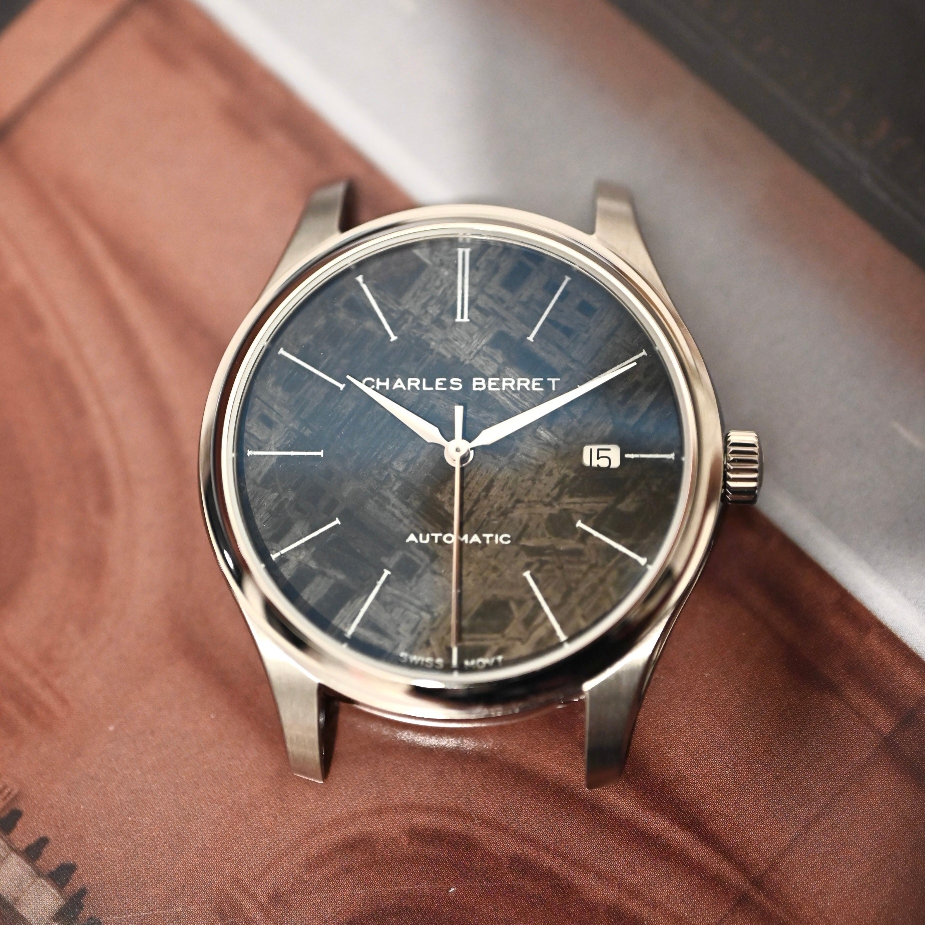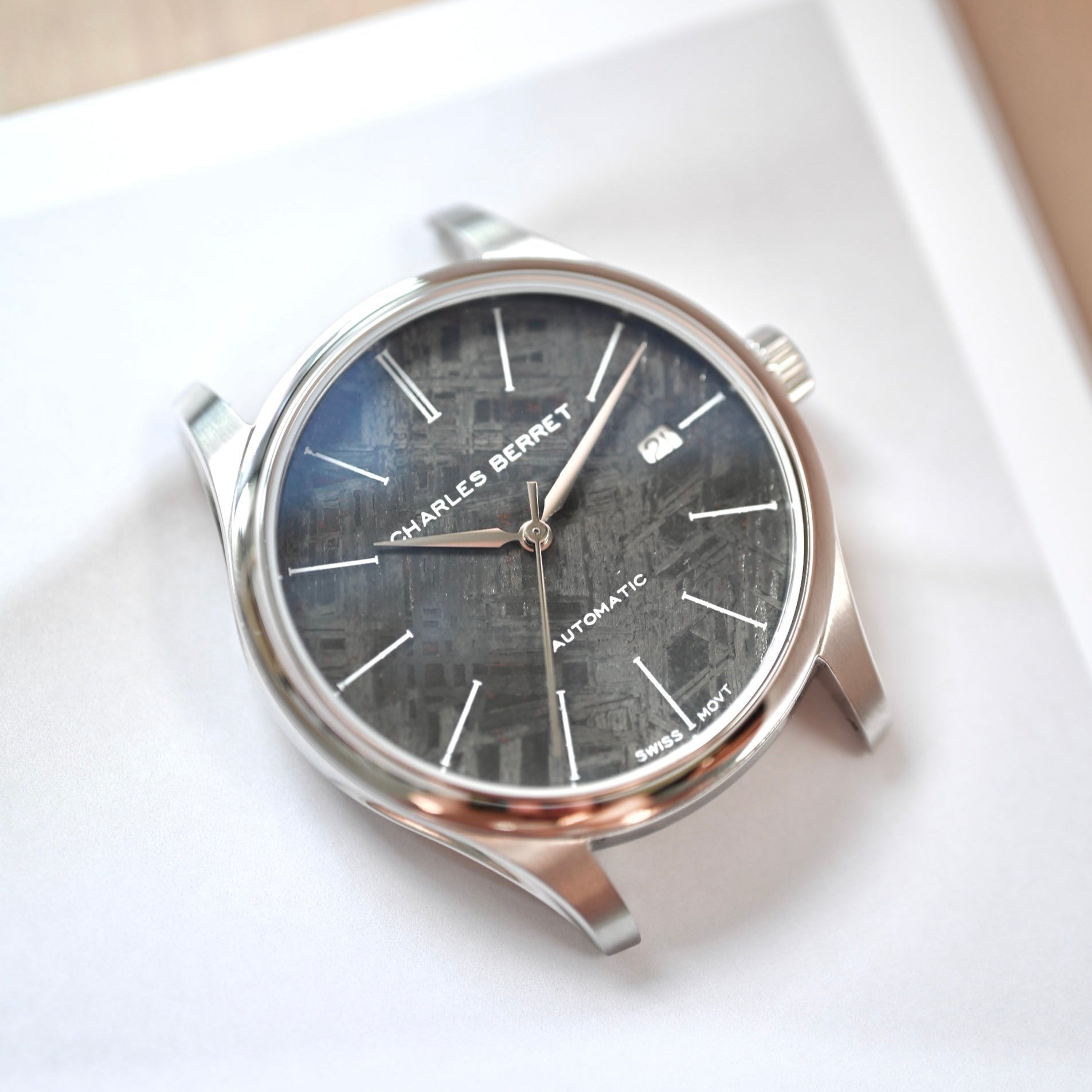 At the heart of the ASTERIA lies a dial like no other. We have meticulously sourced a rare and mesmerizing material from the depths of space - a genuine meteorite. Each piece of this extraordinary meteorite unveils an intricate tapestry of nickel-iron crystals that have formed over countless millennia, creating in the magnificent Widmanstätten pattern. ASTERIA's meteorite dial is a testament to the celestial beauty forged over millions of years. The gaps between these celestial formations are filled with plessite, crating a mesmerizing display of cosmic artistry.