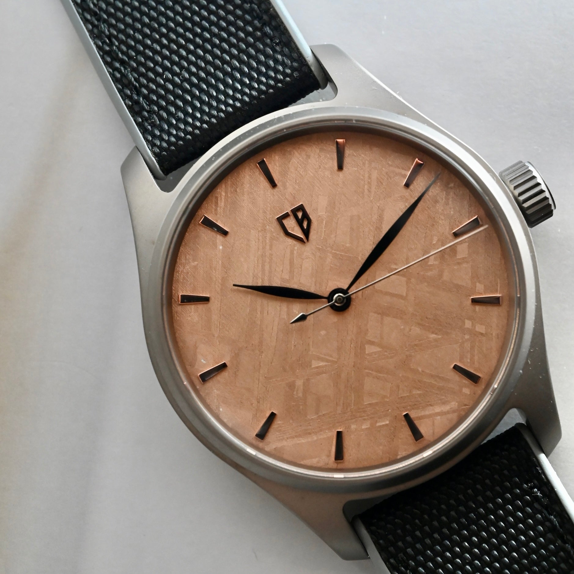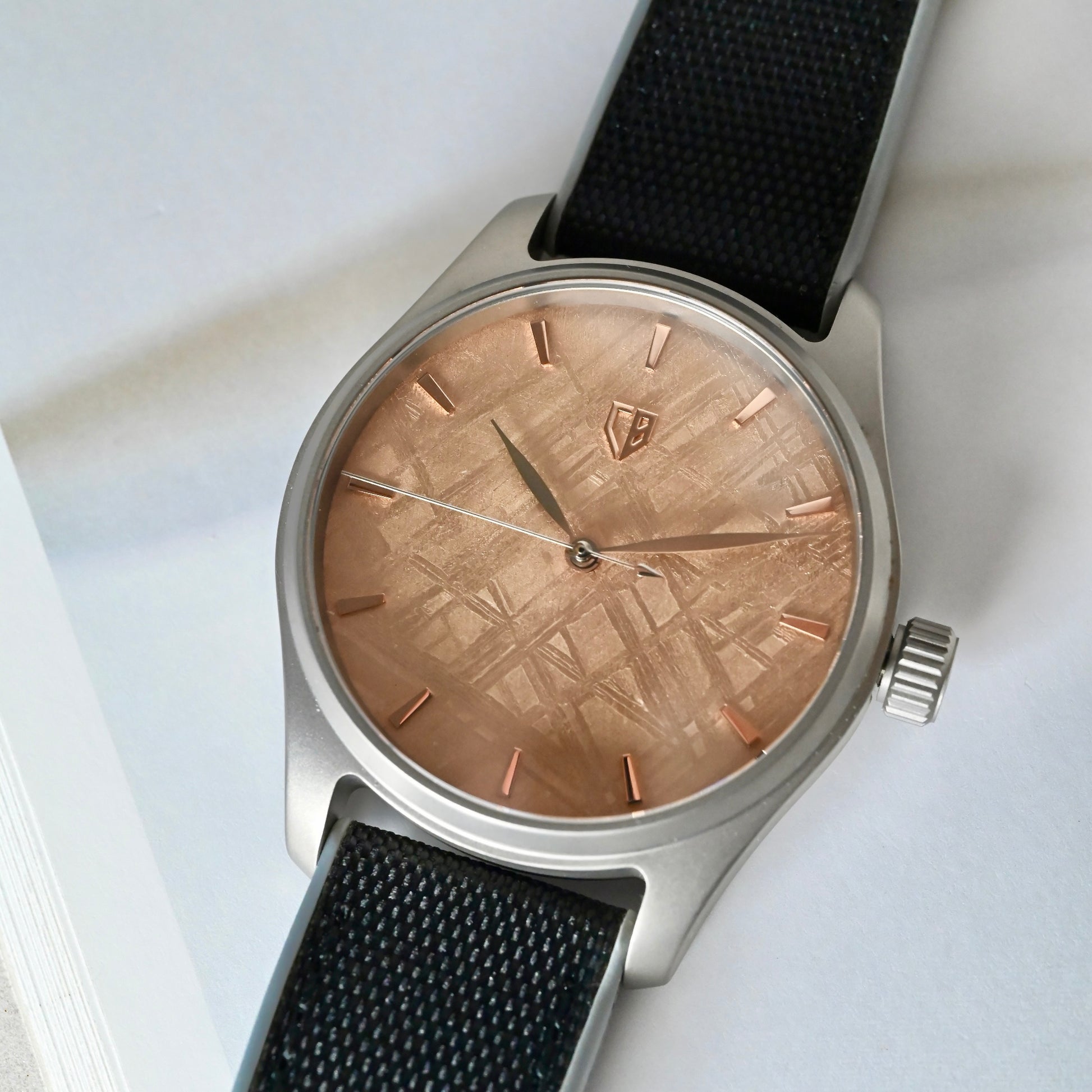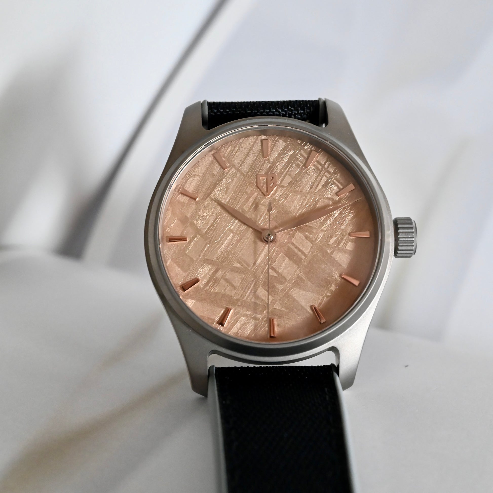 MARS features a genuine meteorite dial, combined with a contemporary design with only high polished metal logo. The emphasis theunique and captivating texture of our meteorite dial, making each piece a true work of art.